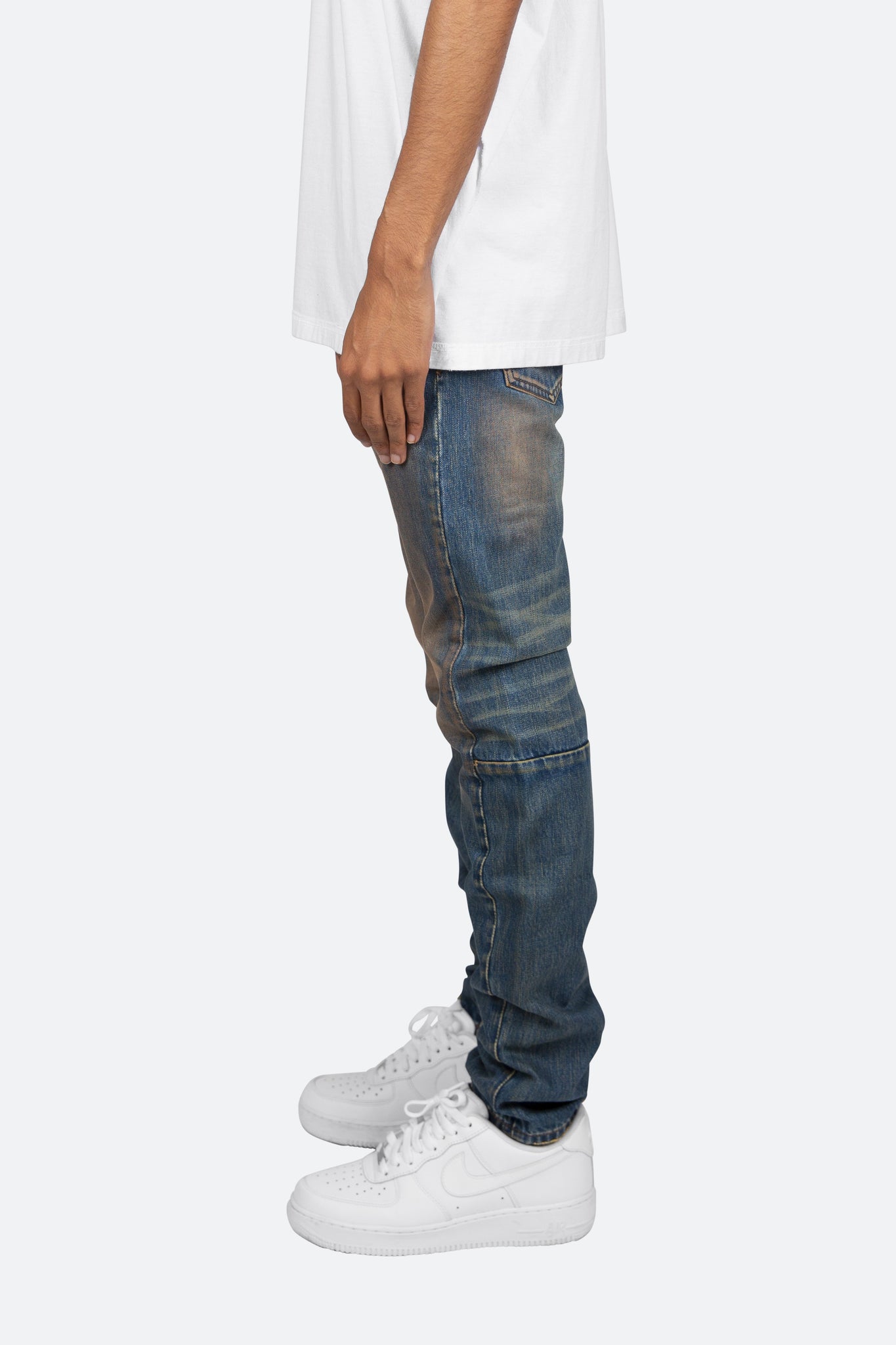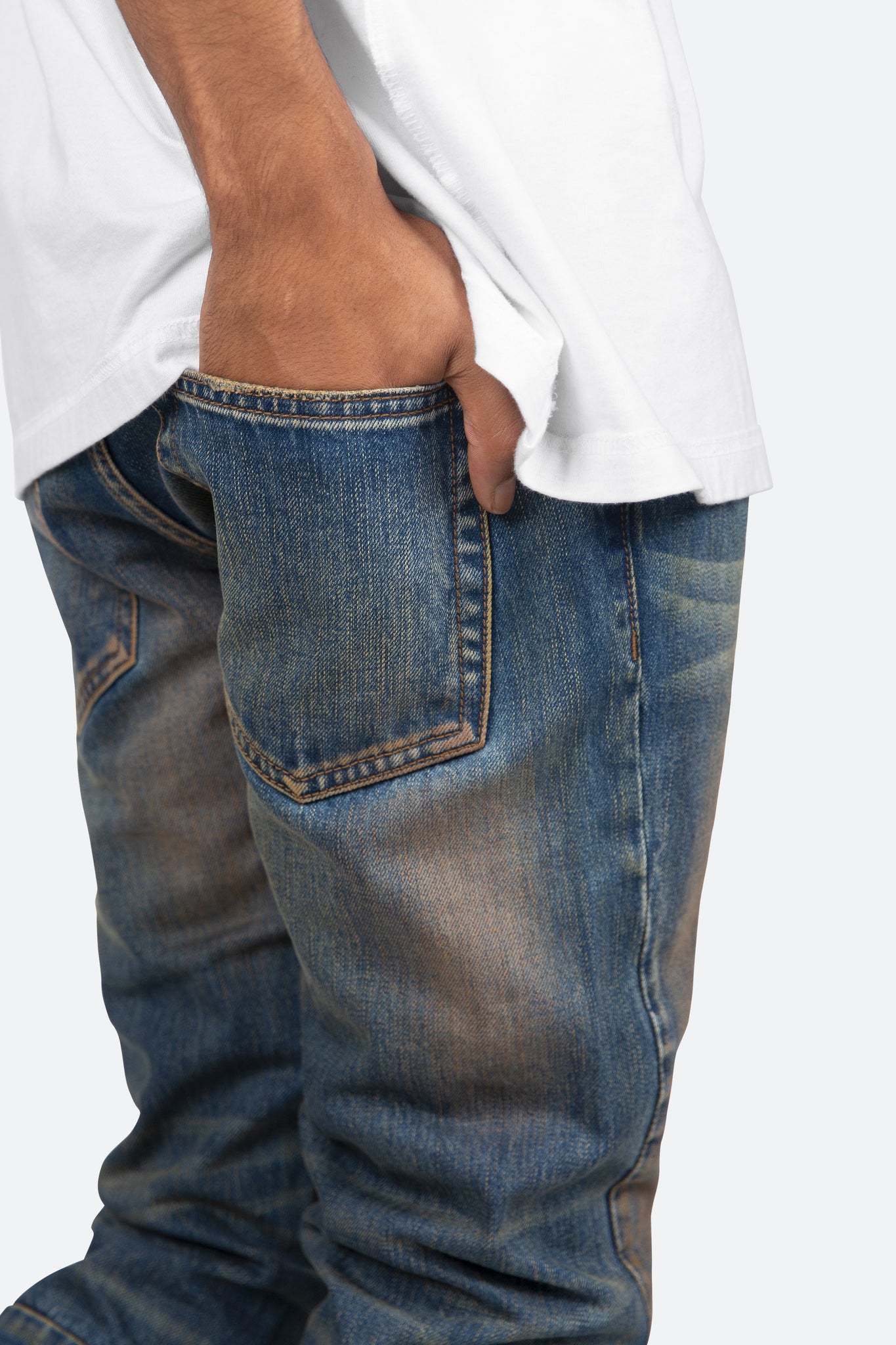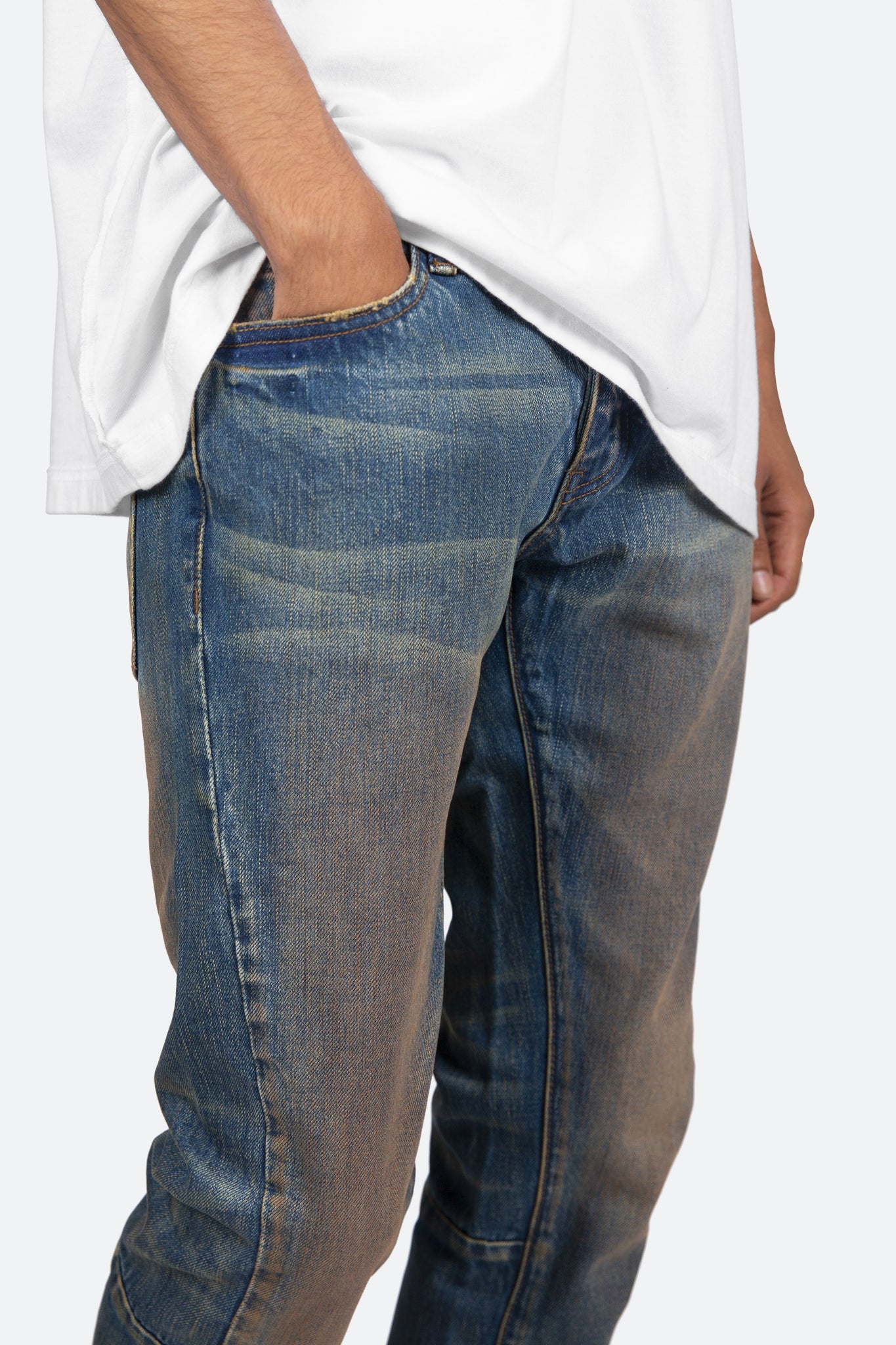 Developed in Los Angeles, the M321 Denim is part of our new M300 line of zipperless M Denim. The M321 denim features a relaxed fit through the thigh that tapers from the knee to the ankle, and features a warm, dark wash, and is finished with the front panel that has a unique shape that tapers at the knee, but does not affect the standard M300 fit.