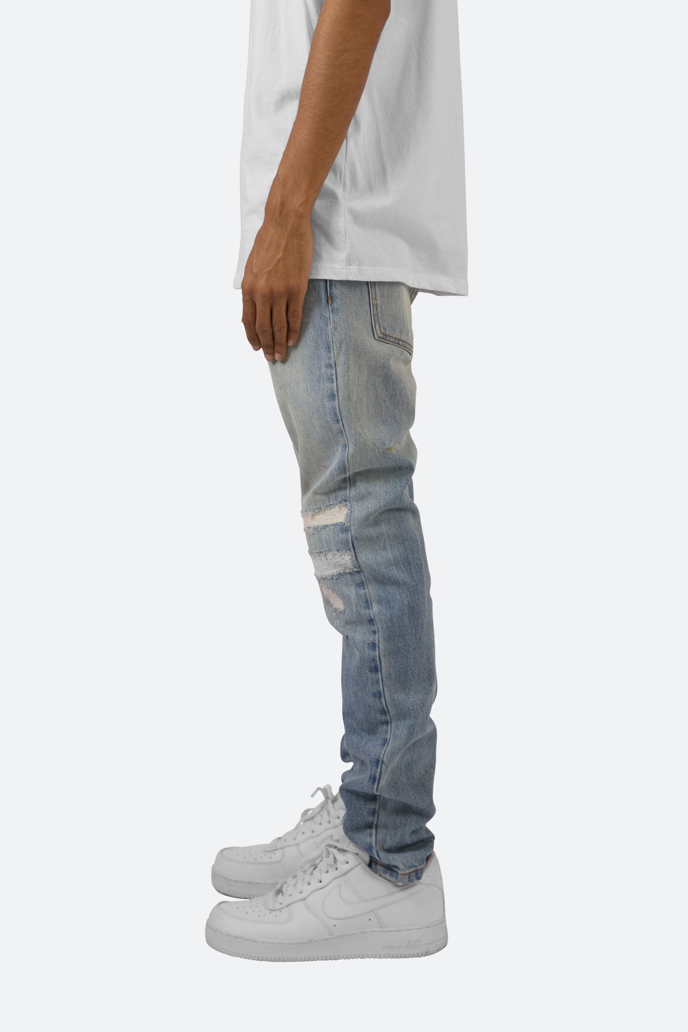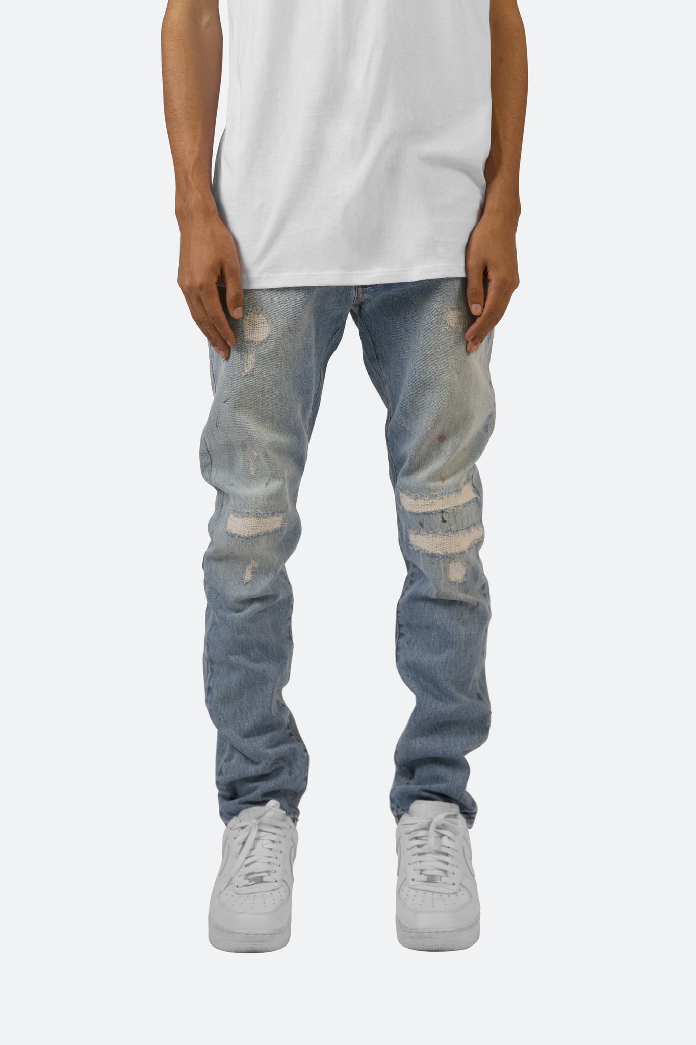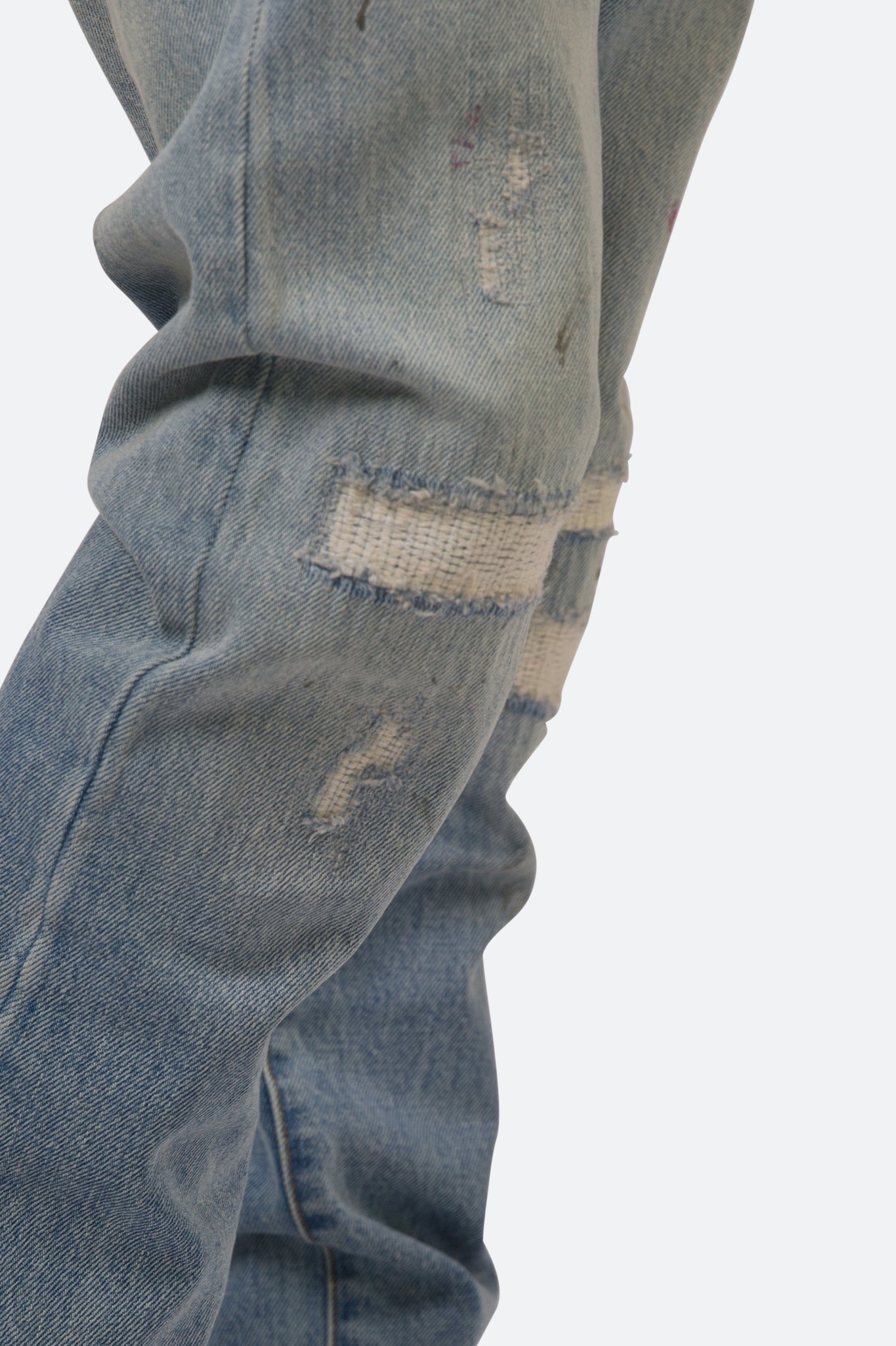 the S173 Denim is designed with our new S fit, which is relaxed through the thigh and a straight leg, featuring a medium vintage wash throughout, distressing at the knees and thighs that have been repaired, and finished with paint details throughout.