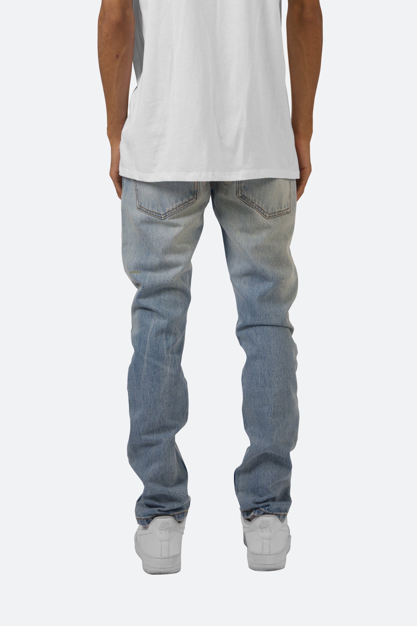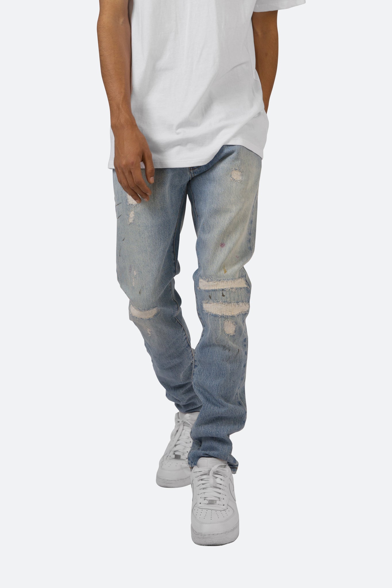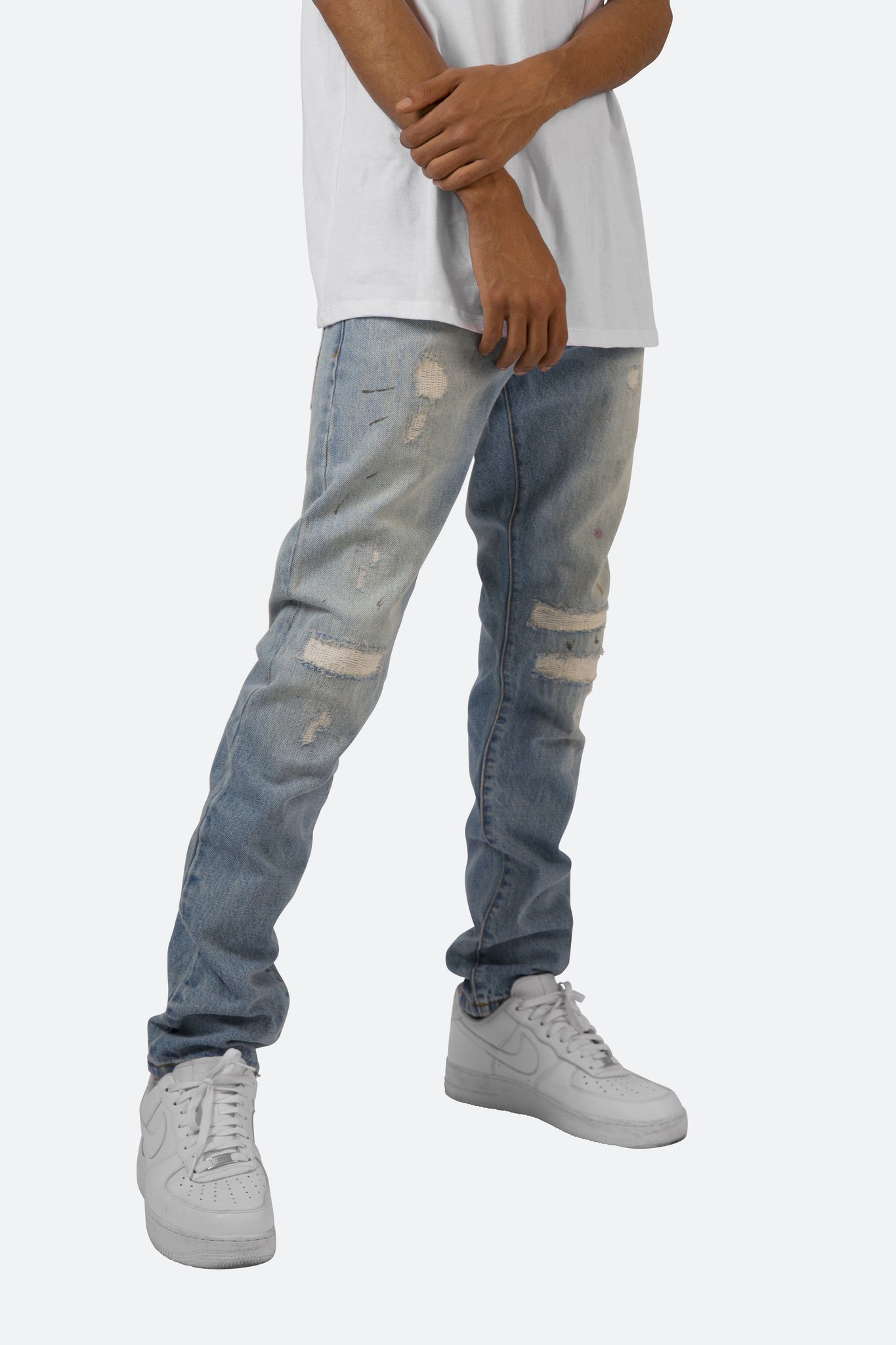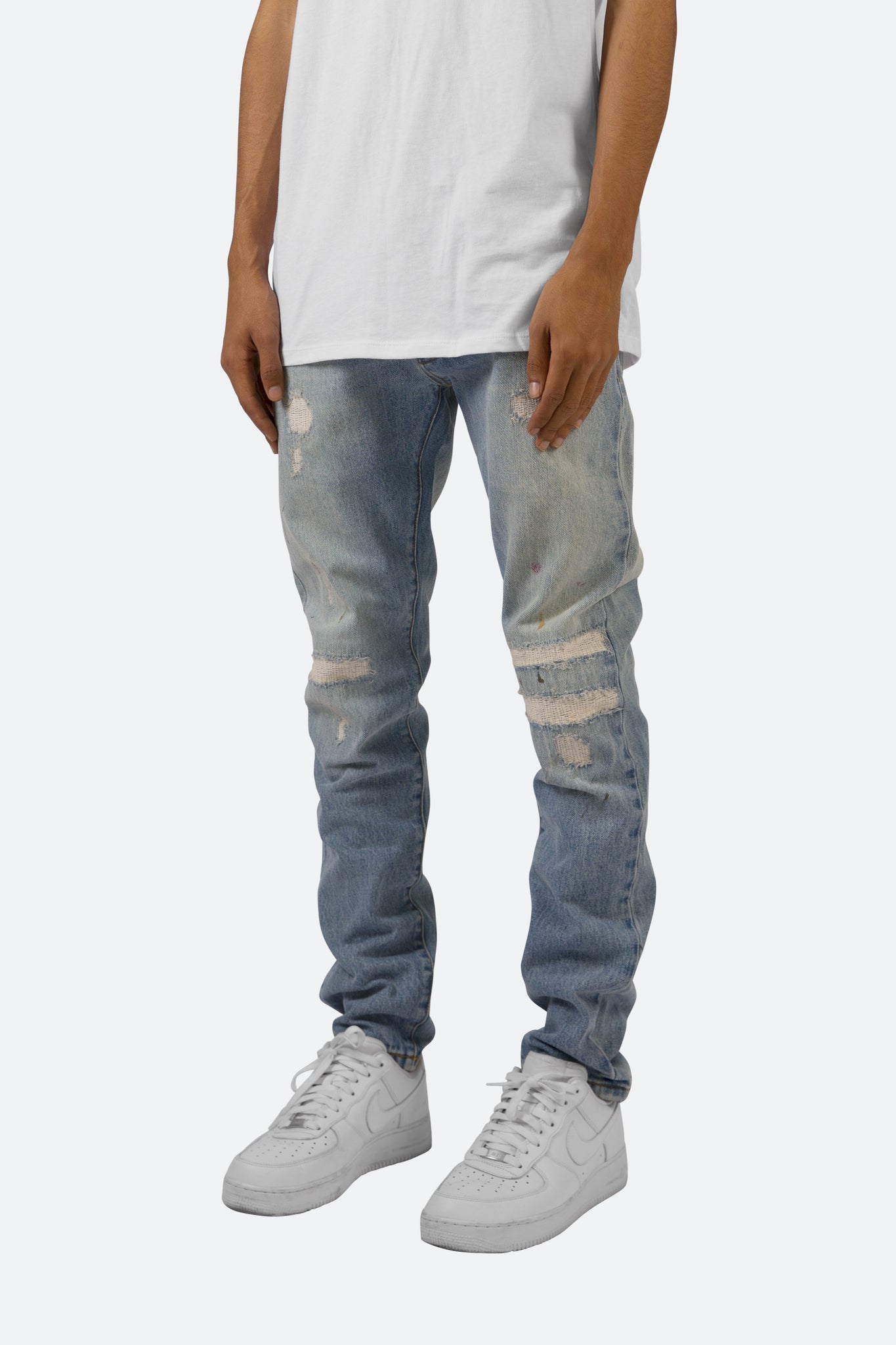 the S173 Denim is designed with our new S fit, which is relaxed through the thigh and a straight leg, featuring a medium vintage wash throughout, distressing at the knees and thighs that have been repaired, and finished with paint details throughout.