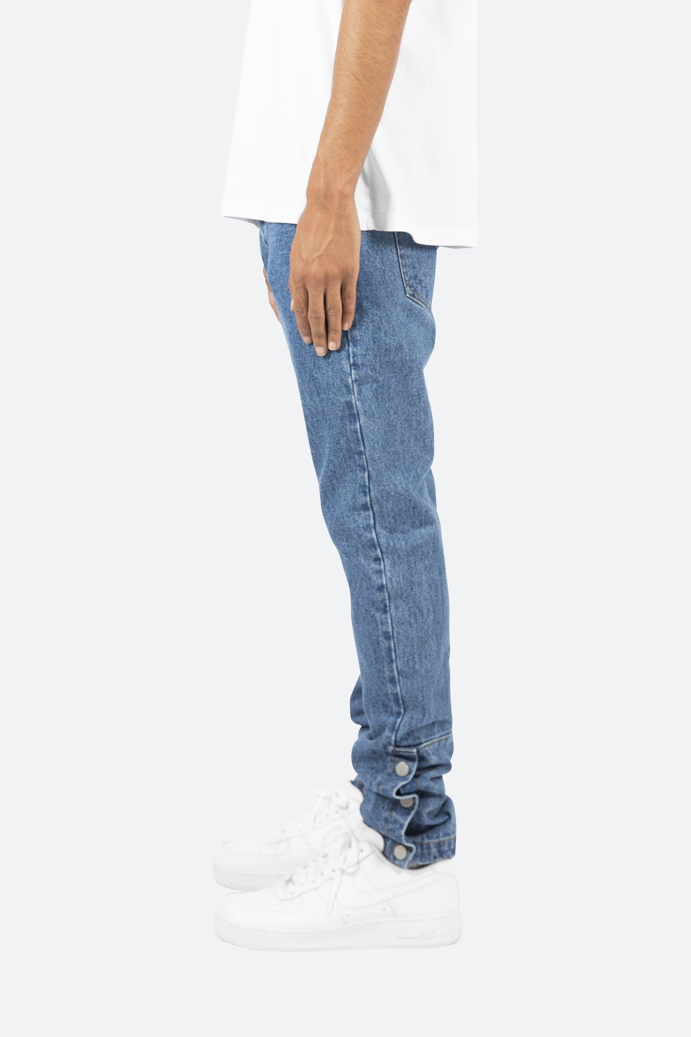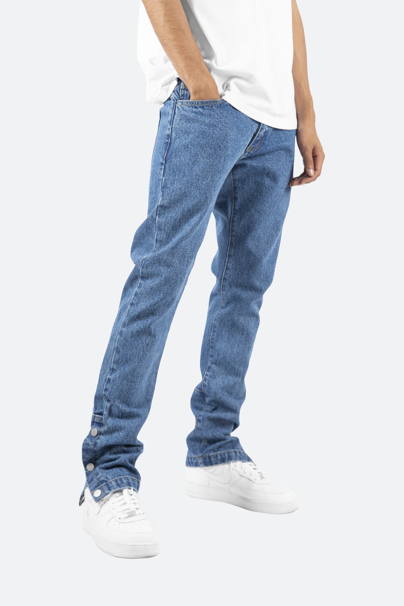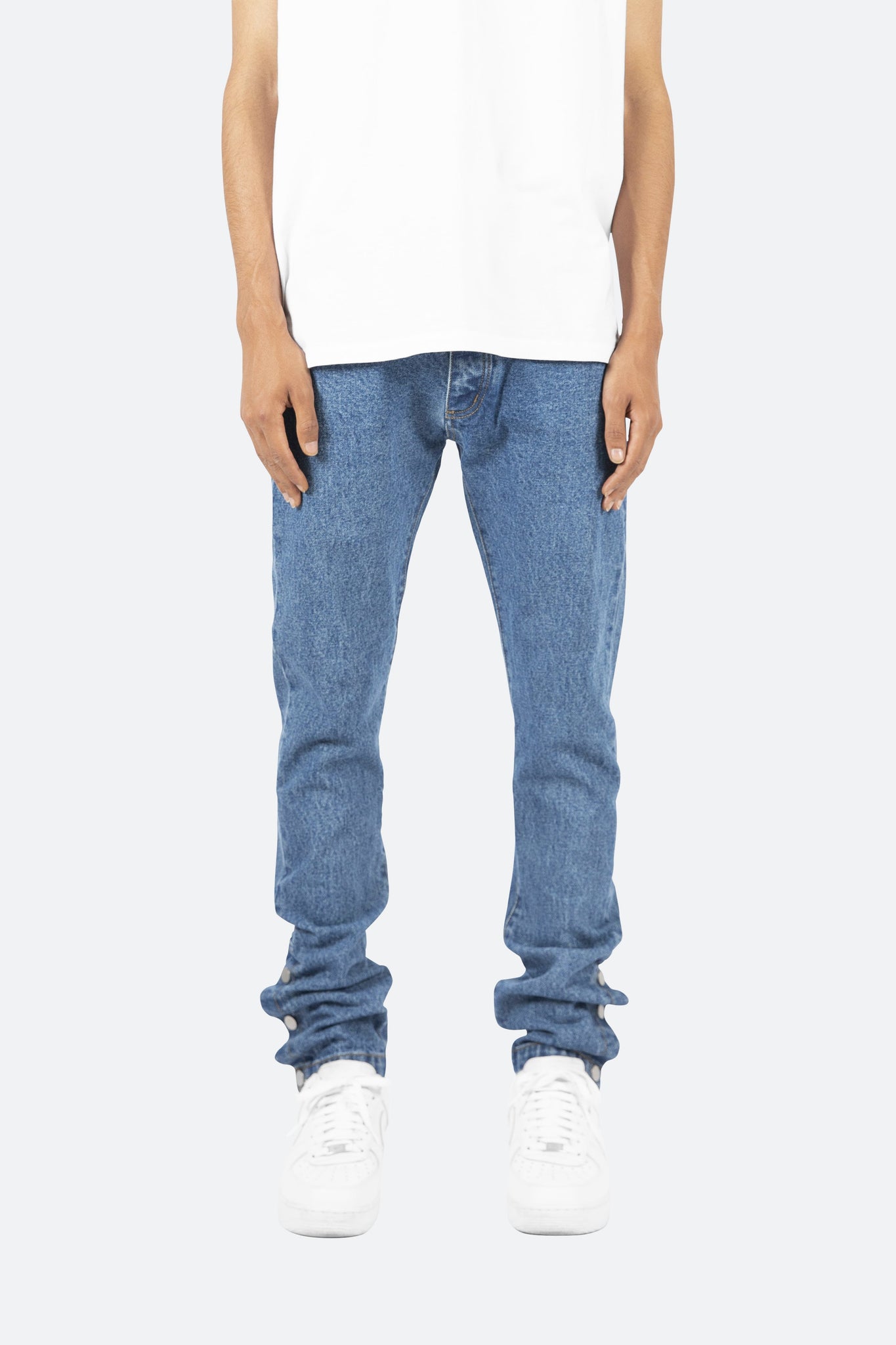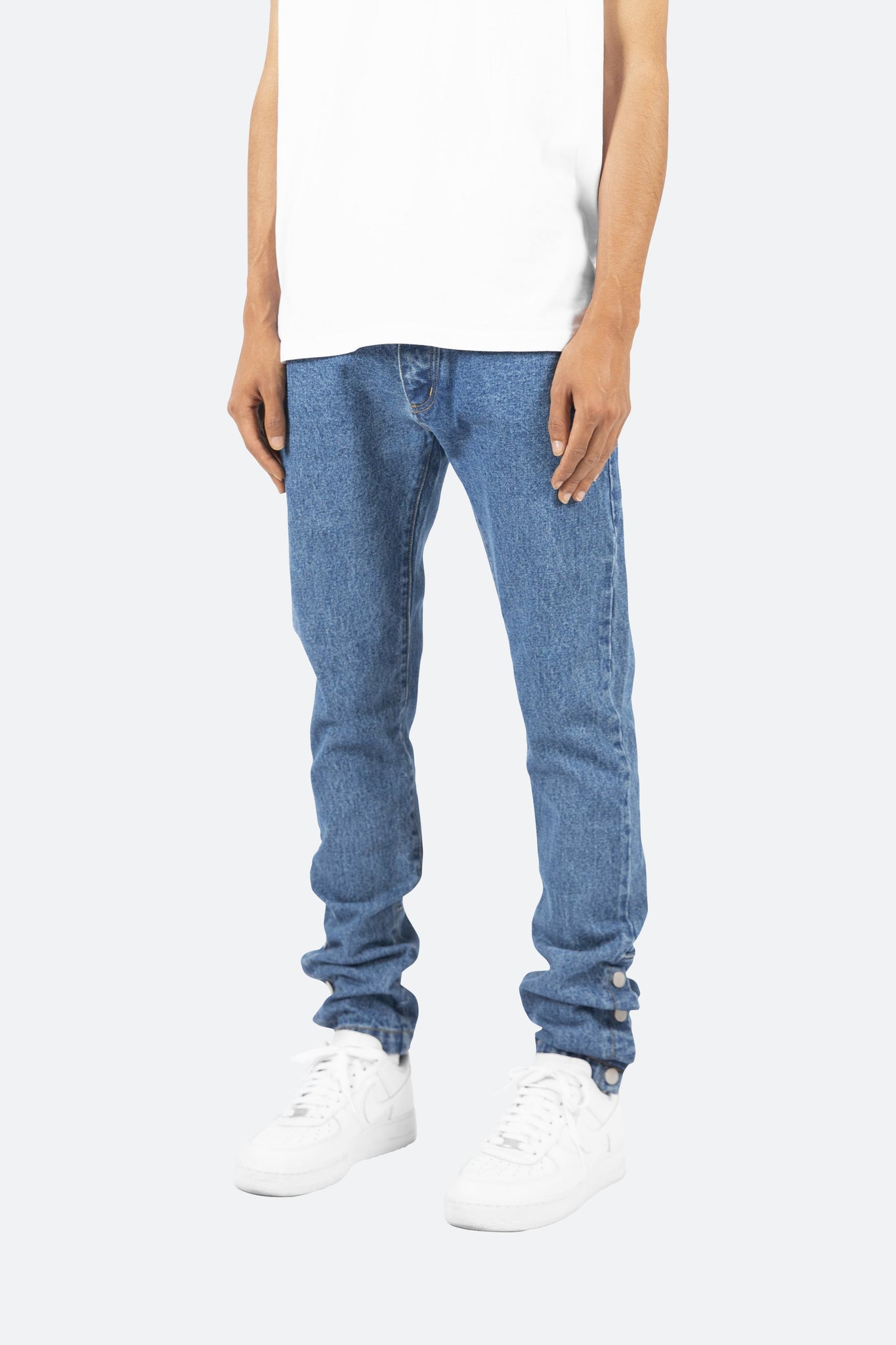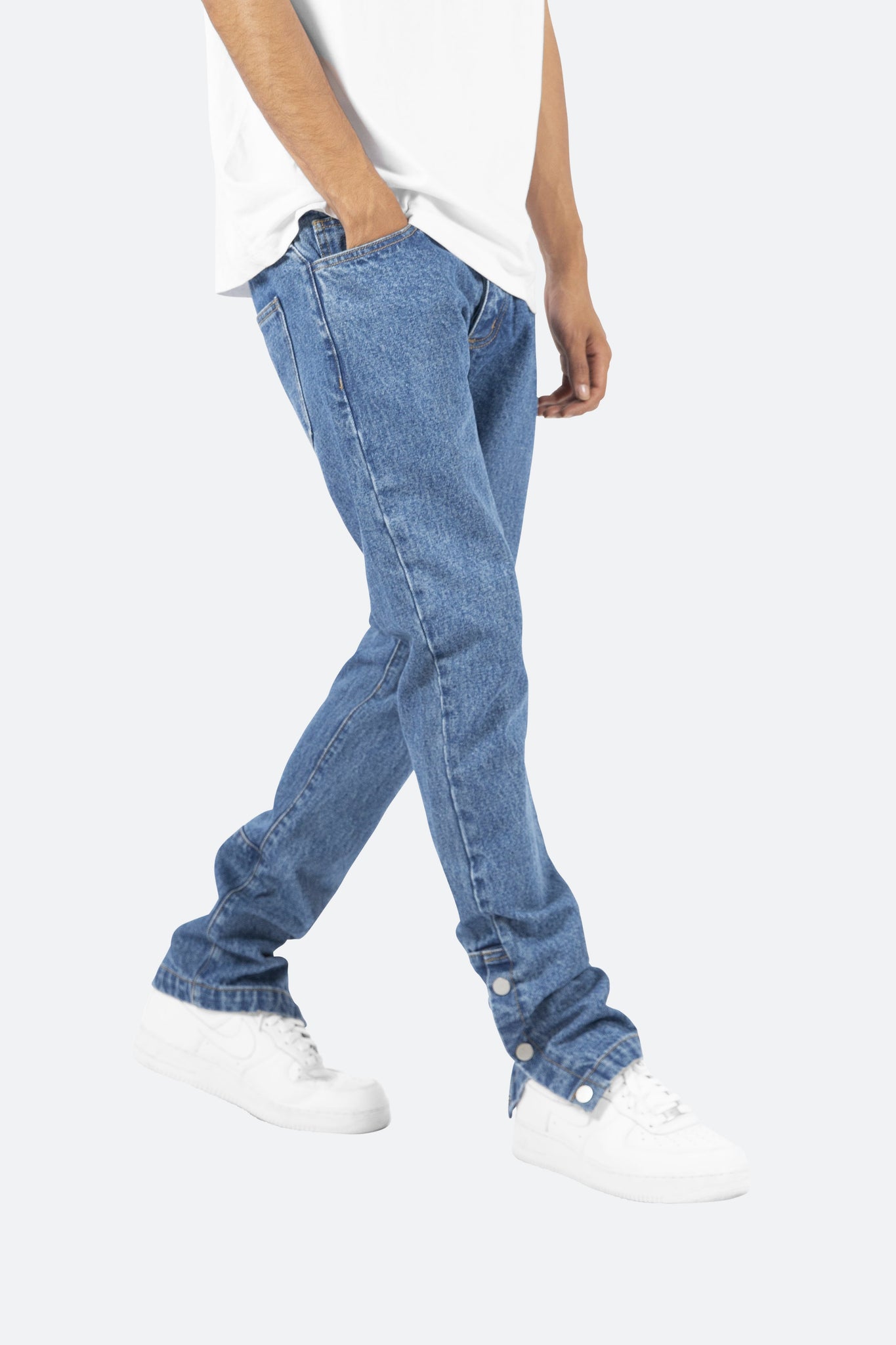 the S2 Snap Denim is designed with our new S fit, which is relaxed through the thigh and a straight leg, featuring a vintage wash throughout, and is completed with snaps closures at the bottom of the outseam.