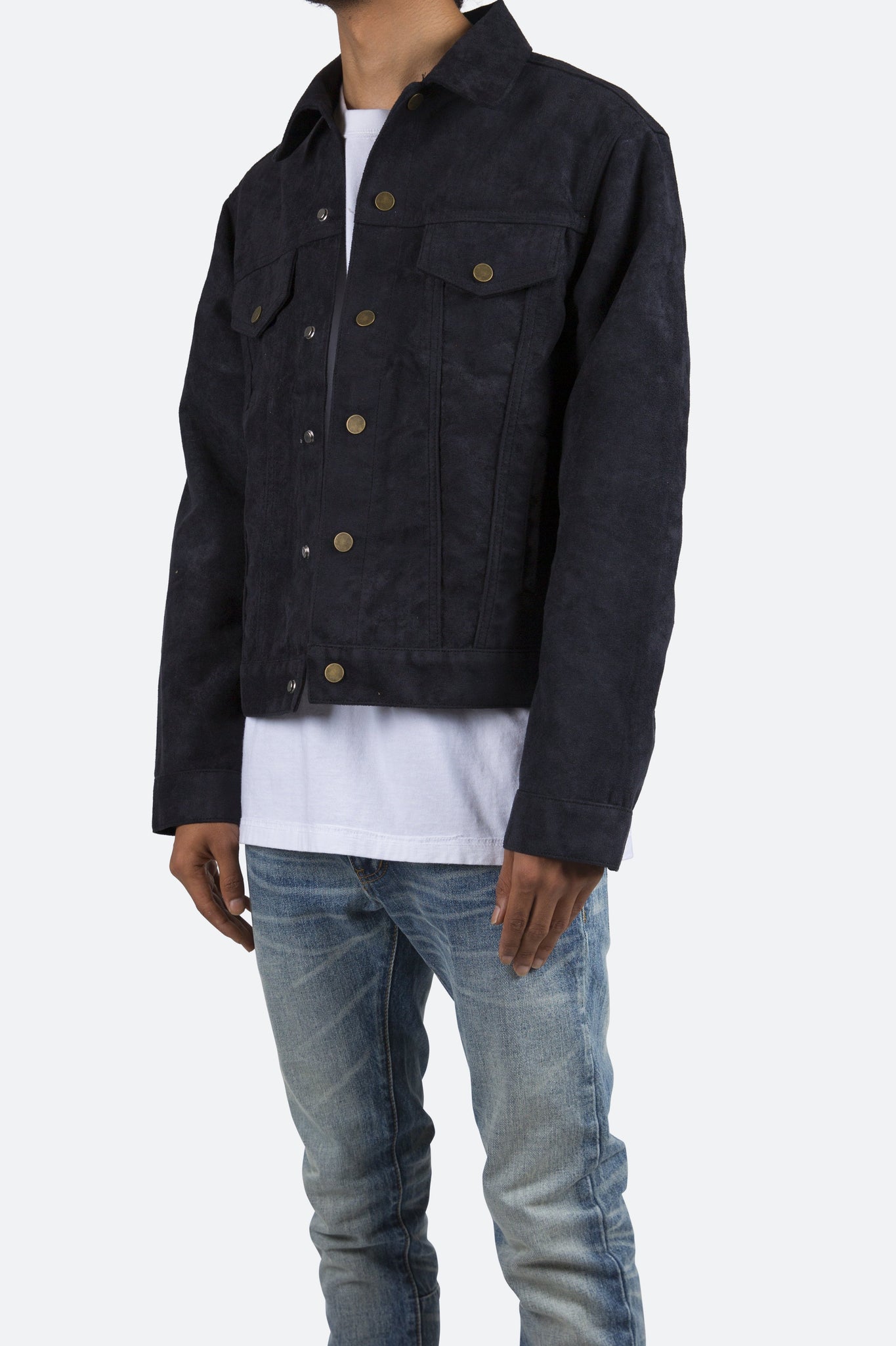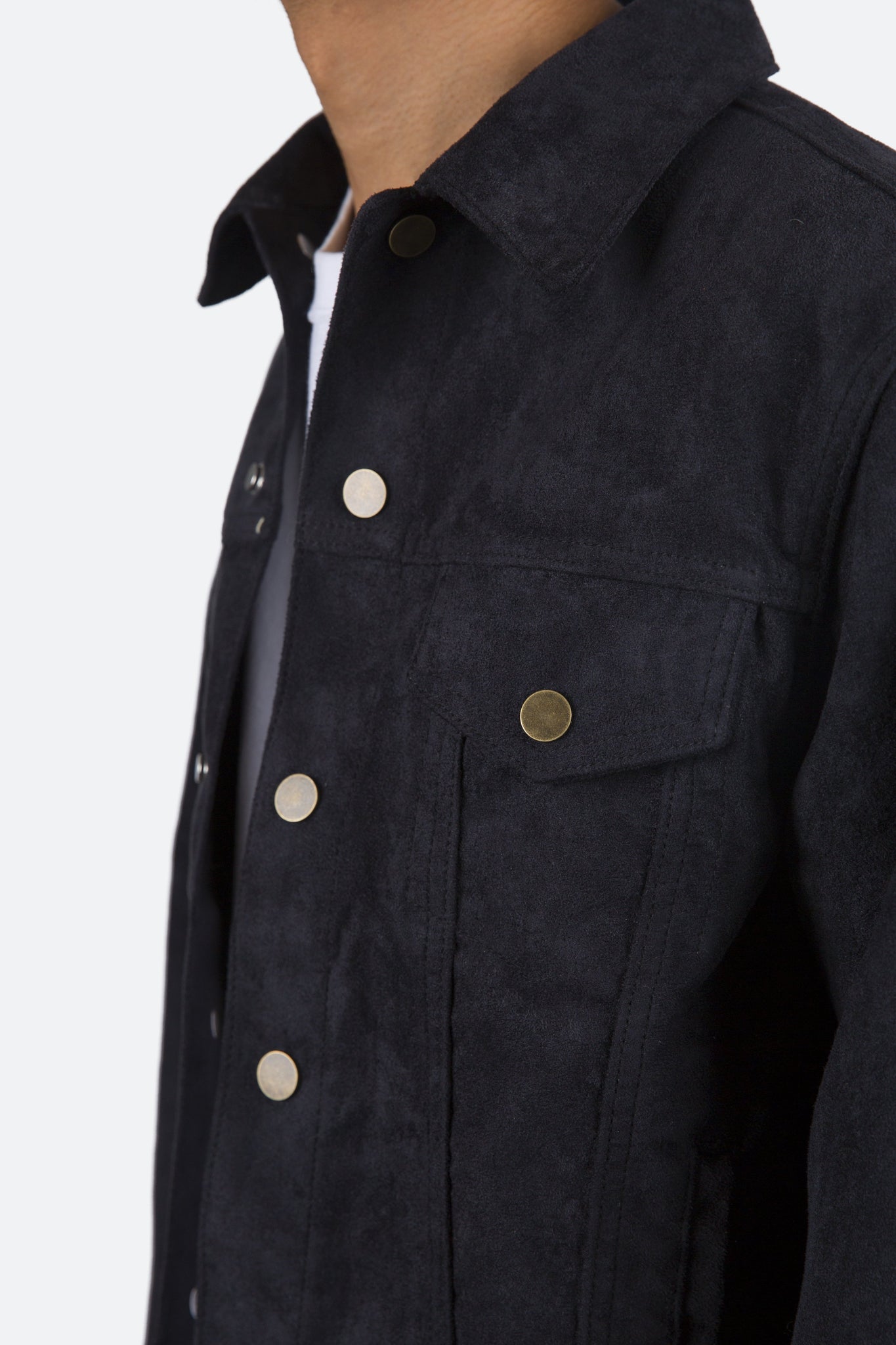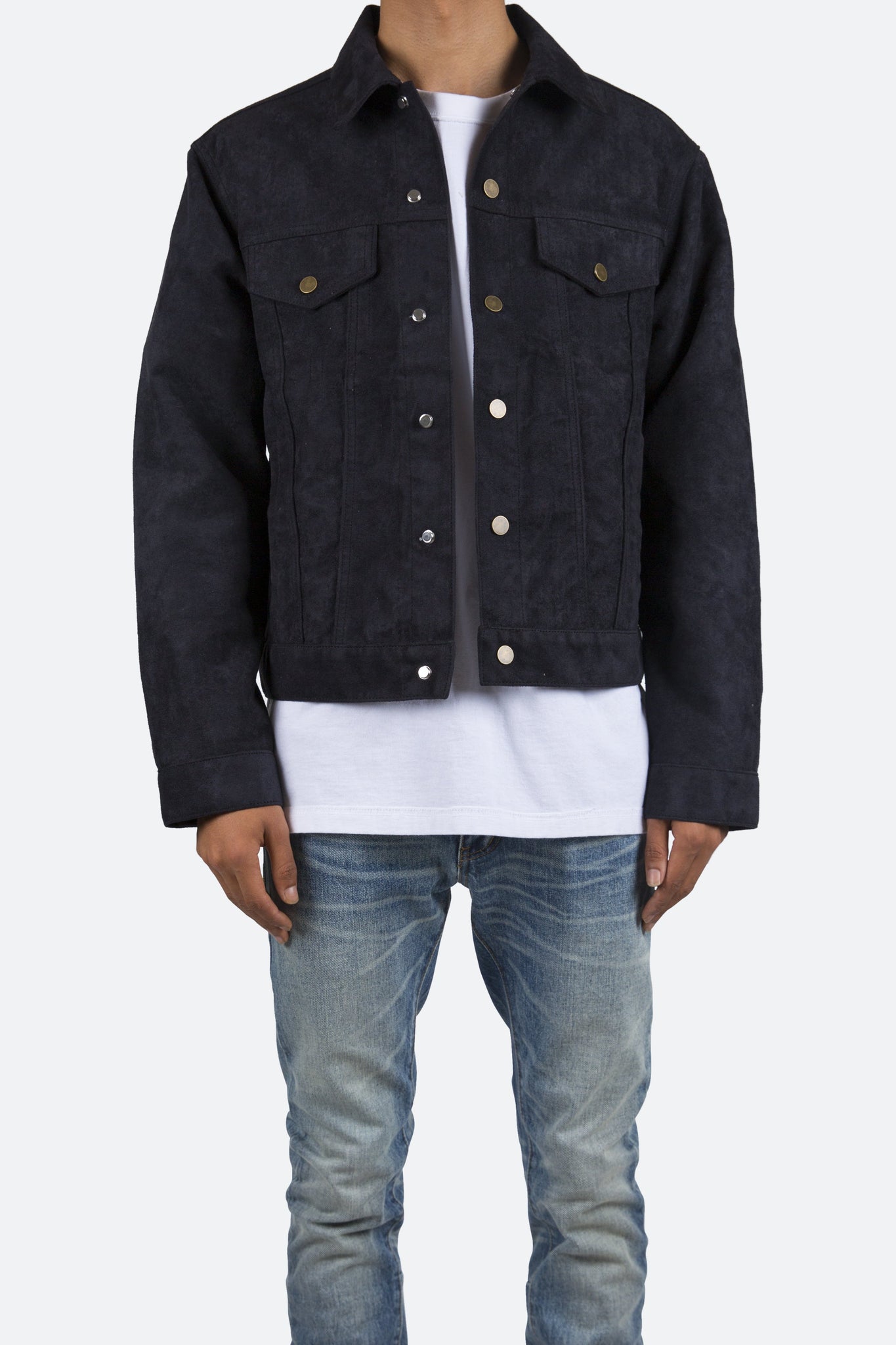 the Suede Trucker is designed with a relaxed fit and features a classic cut and details and is constructed out of polyester-suede and is finished with metal snap buttons throughout.