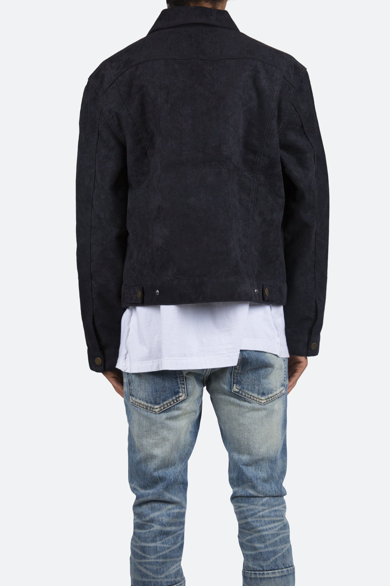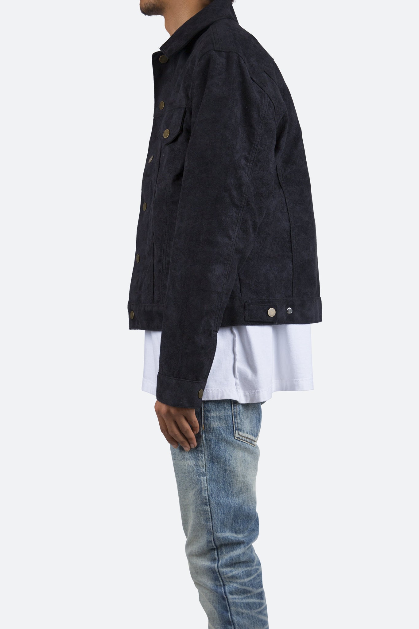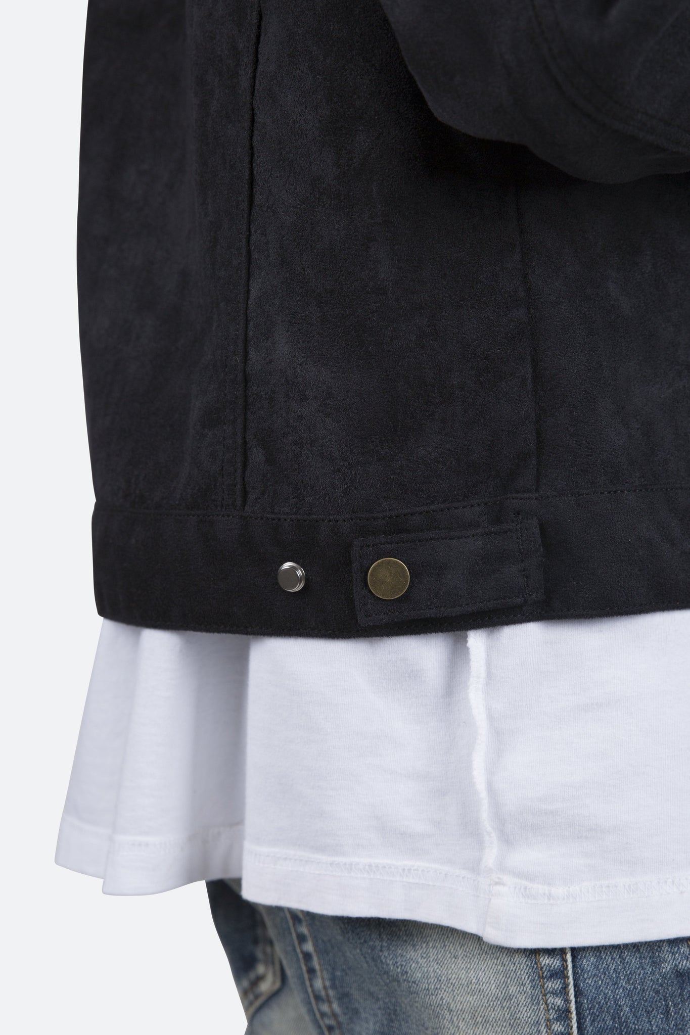 the Suede Trucker is designed with a relaxed fit and features a classic cut and details and is constructed out of polyester-suede and is finished with metal snap buttons throughout.
