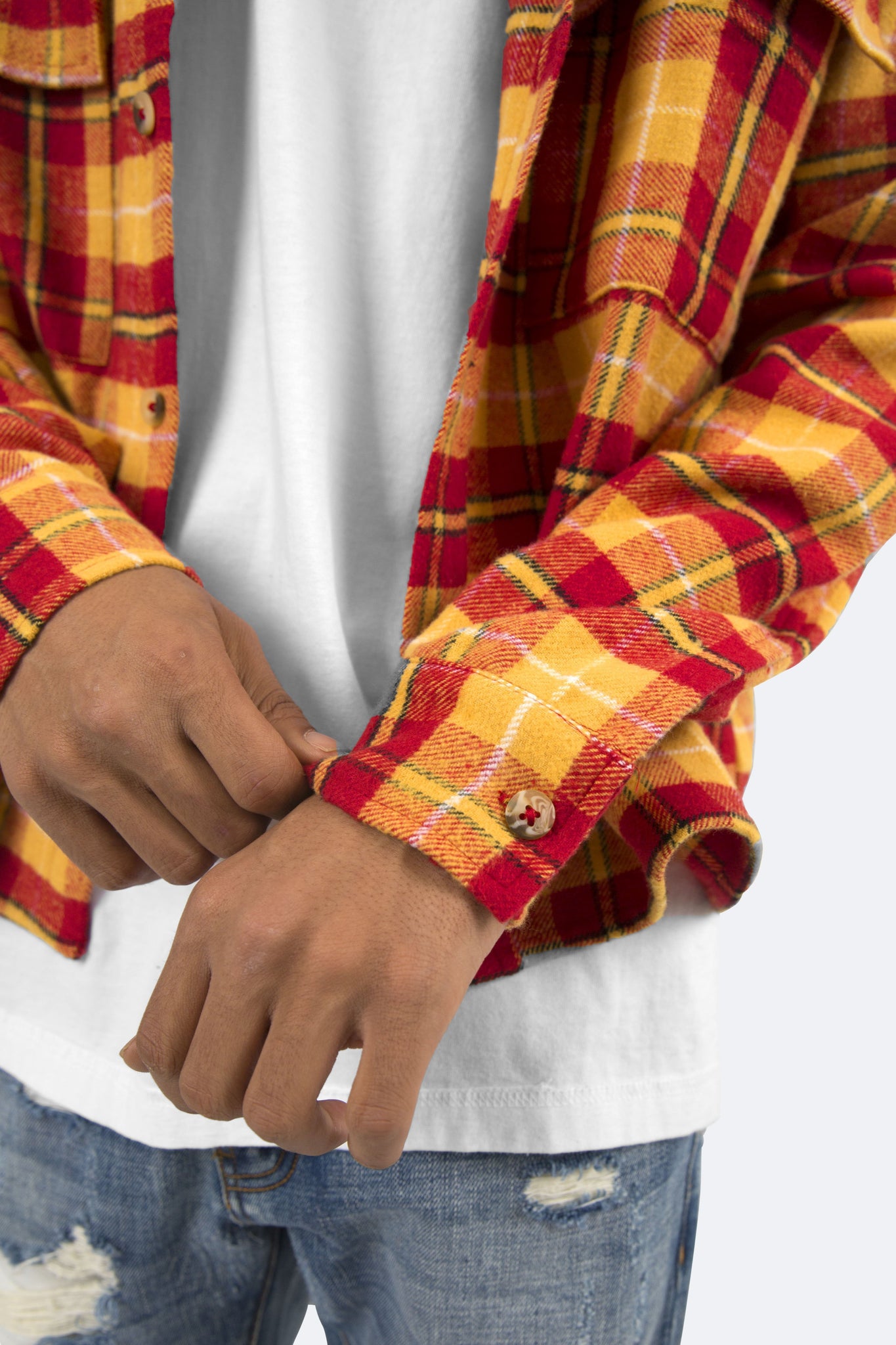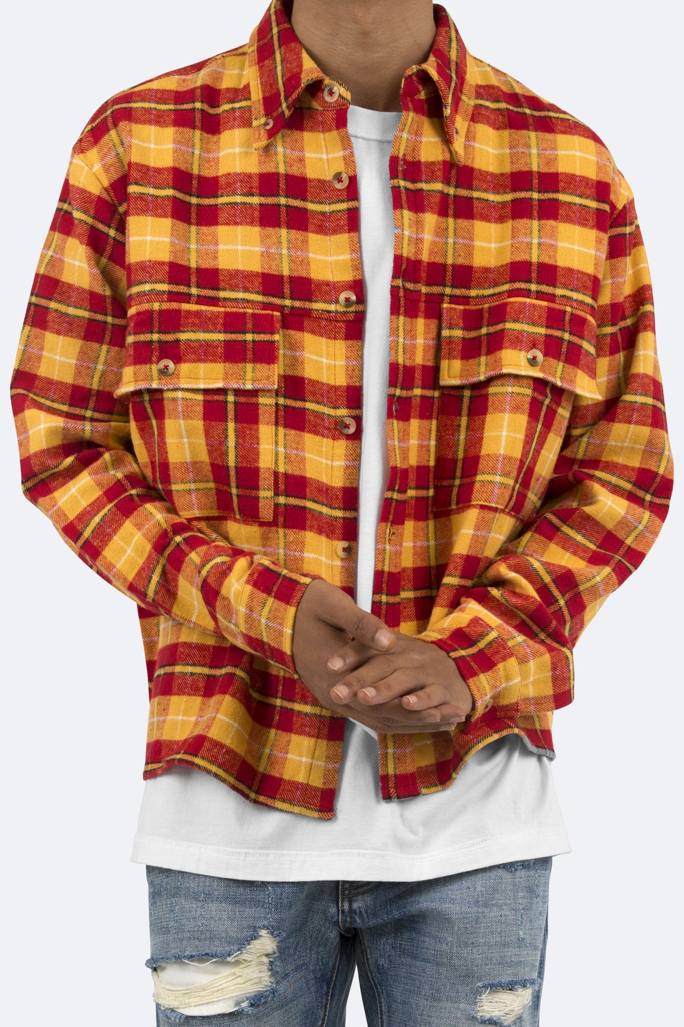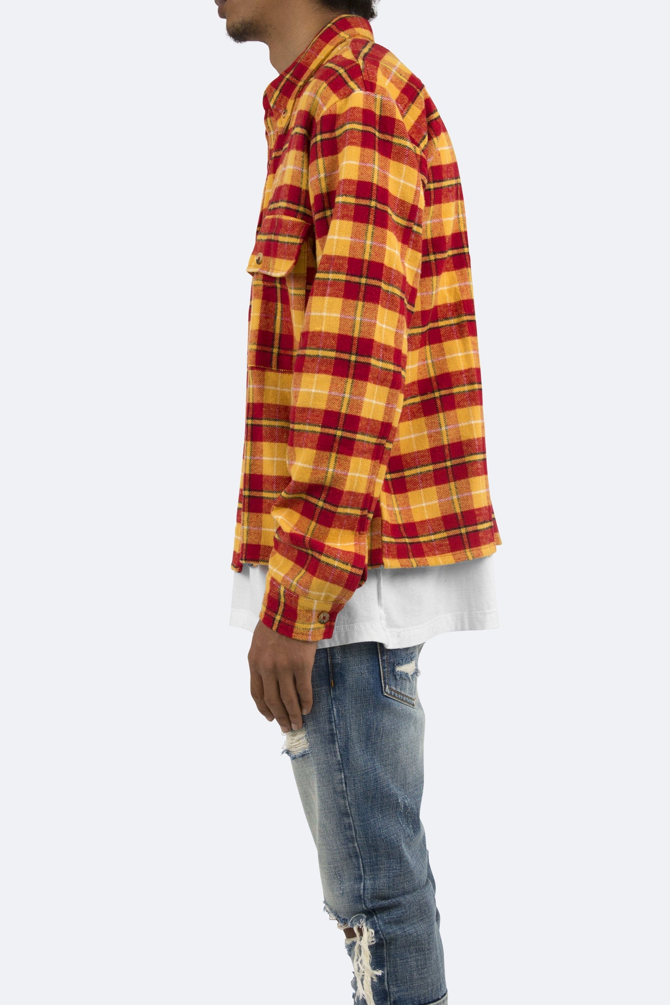 Relaxed Cargo Flannel Shirt - Yellow/Red